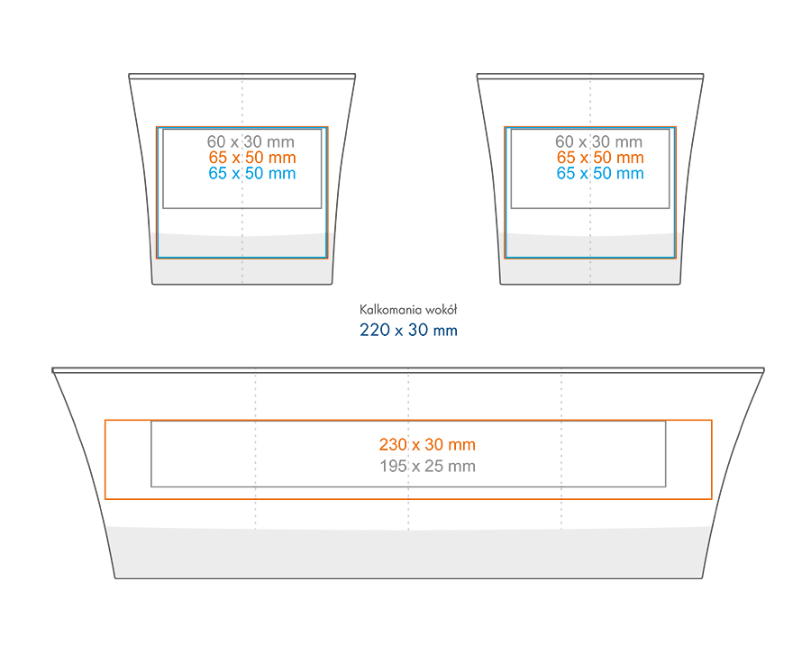 * W przypadku projektów wybiegających poza standardową powierzchnię nadruku prosimy o kontakt z działem handlowym.